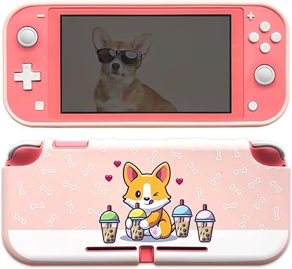 BelugaDesign Corgi Boba Case | Cutetecore Kawaii Dog Bubble Tea Pastel Pet Cover | Cute Snap Shell Compatible with Nintendo Switch | Perfect for Kids, Teens, and Women (Switch Lite, Pink